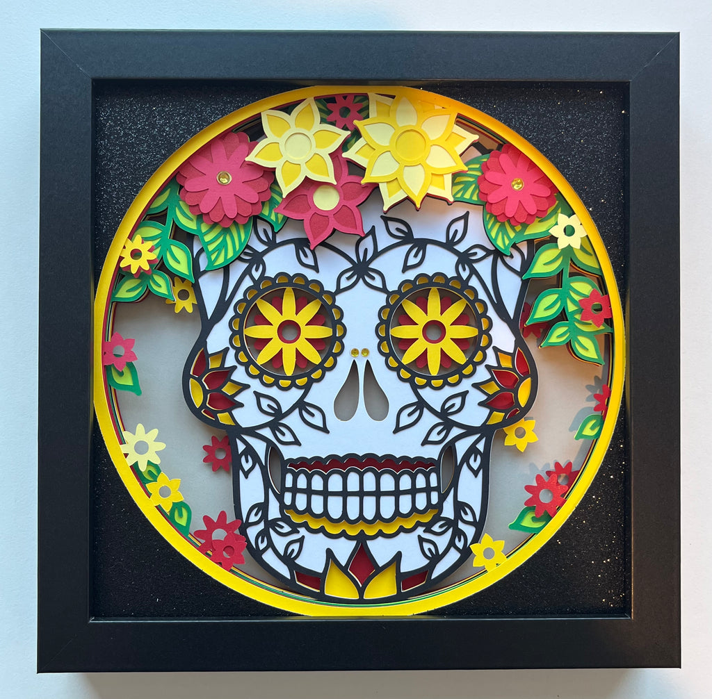 Black frame measures 9x9. So many color options! Glitter background and lots of shiney foil paper!